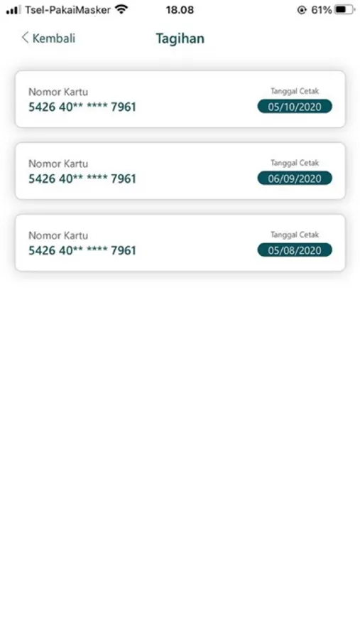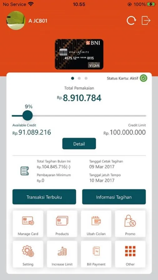 BNI Credit Card Mobile memiliki fitur-fitur antara lain: