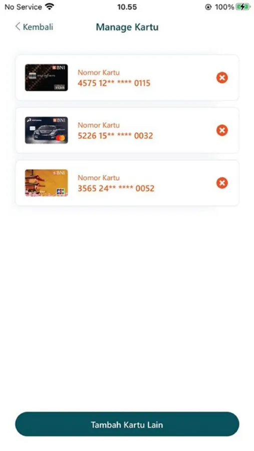 4. Manage Card (Kelola kartu dalam aplikasi)