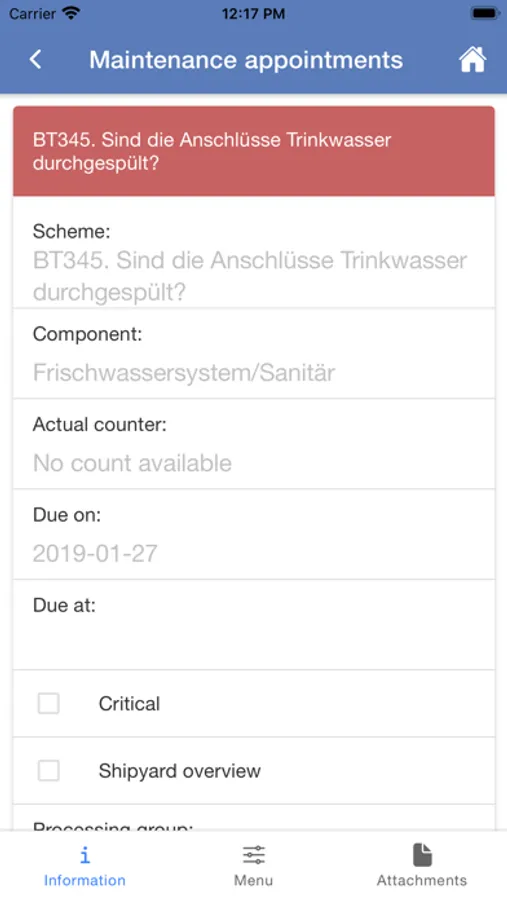 - Wartungstermine können erstellt, durchgeführt und gelöscht werden