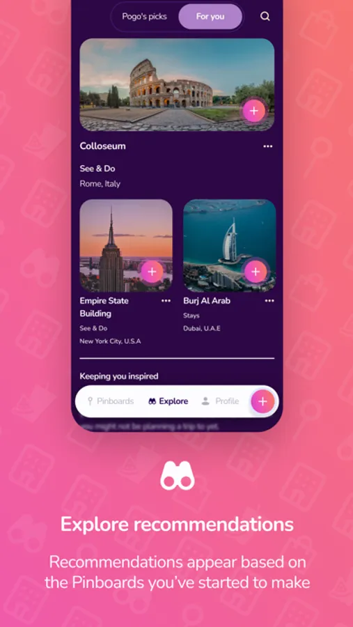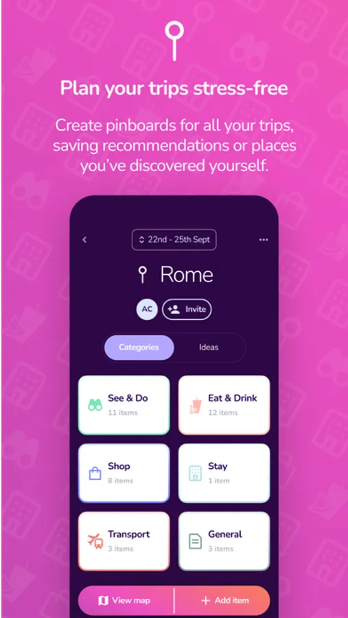 Make tedious trip planning group chats a thing of the past. With Pogo, you can easily invite others to a Pinboard to plan a trip together. So you can all add stuff, see what's on the agenda, and vote for your favourites.