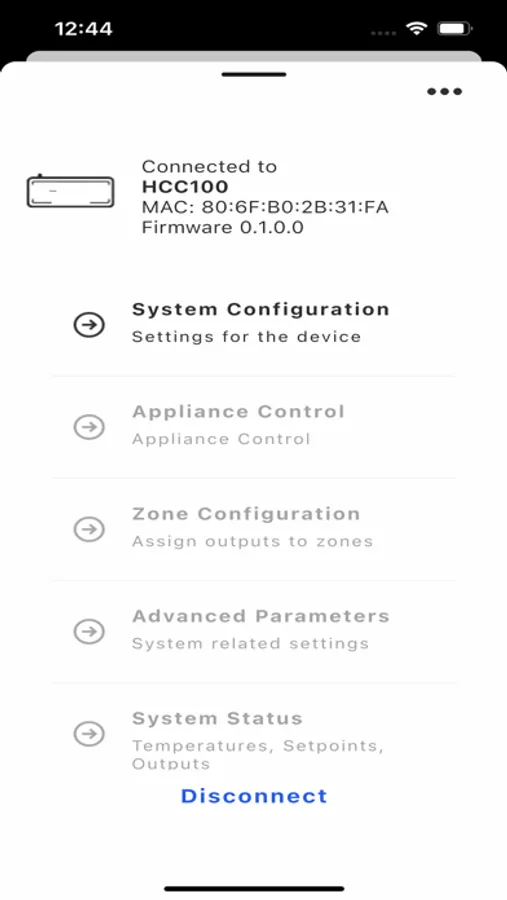 · Configure general System settings (heating and/or cooling), type of Appliance control and Zones (wired or wireless) with actuator outputs.