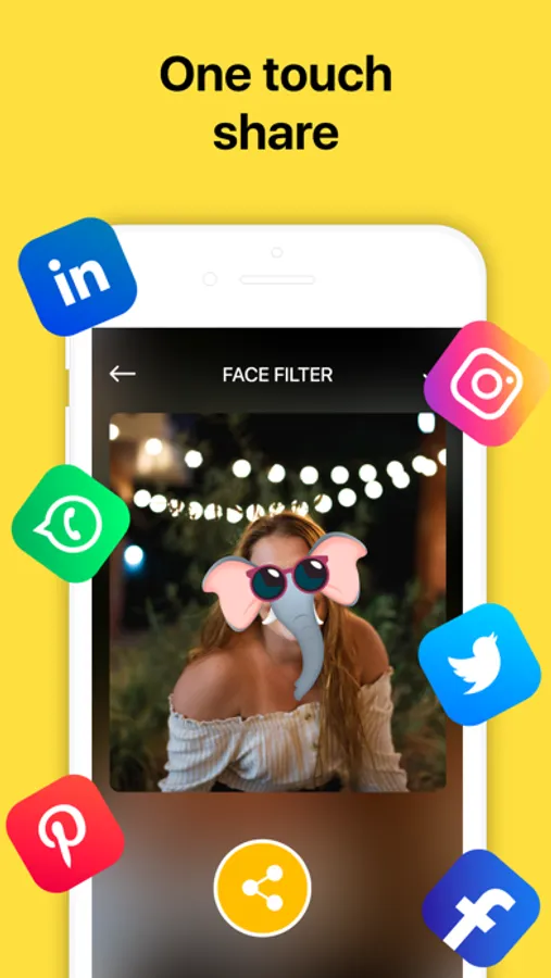 • Add funny face filters to your photos, and edit your friends’ pictures to give them the most incredible effects.
