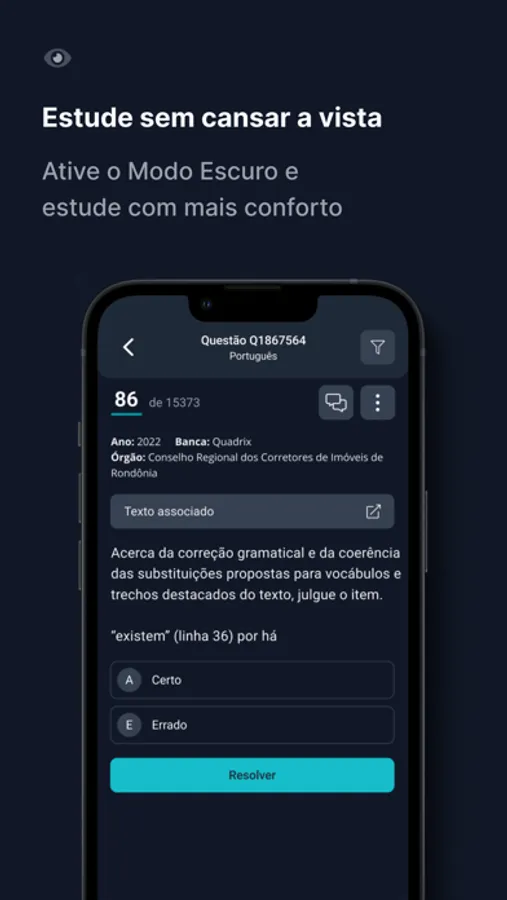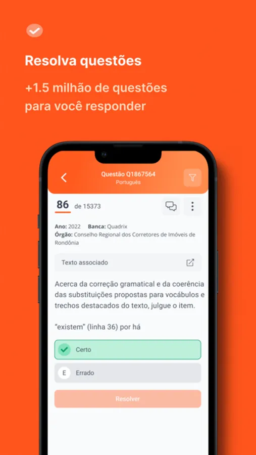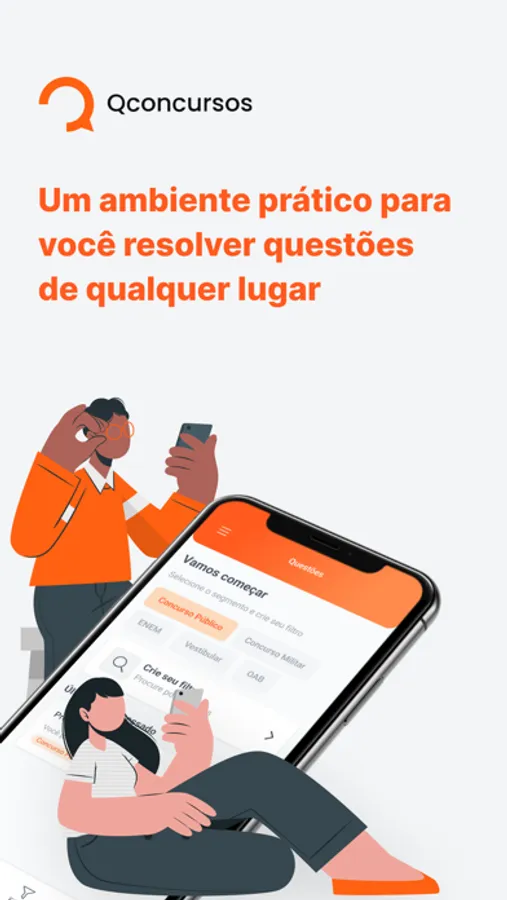Com o aplicativo do Qconcursos você poderá estudar onde quiser e mesmo sem internet! Resolva questões, assista videoaulas, crie cadernos, e veja os comentários de alunos e dos professores. Todas as questões do site estão no app. Estude para concursos públicos, OAB, ENEM e vestibulares de uma forma fácil. Nosso app é gratuito!