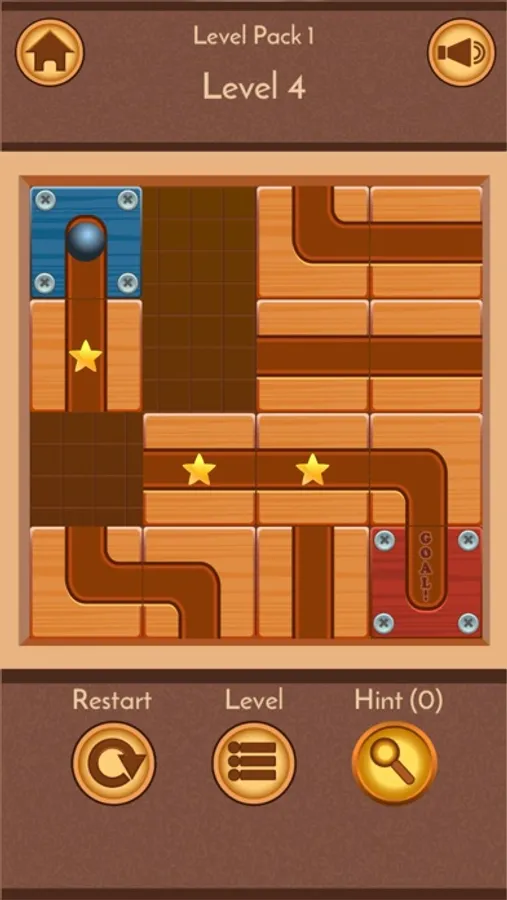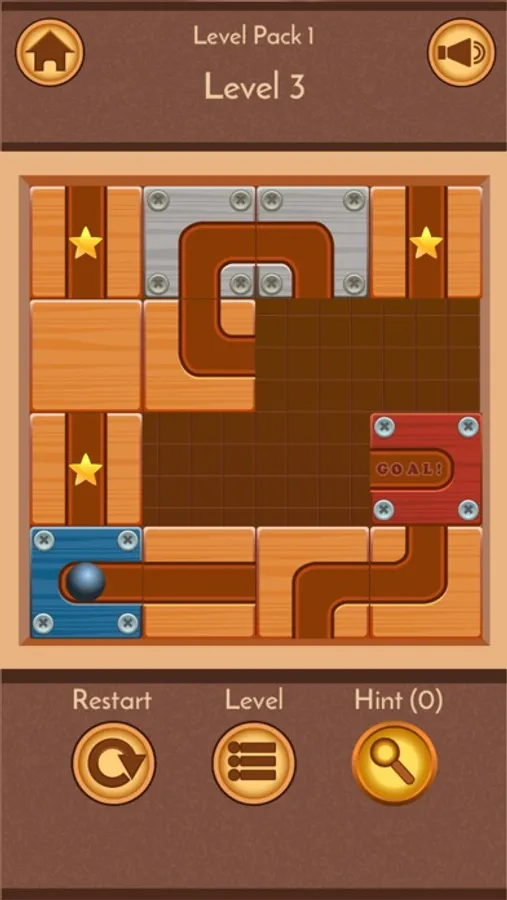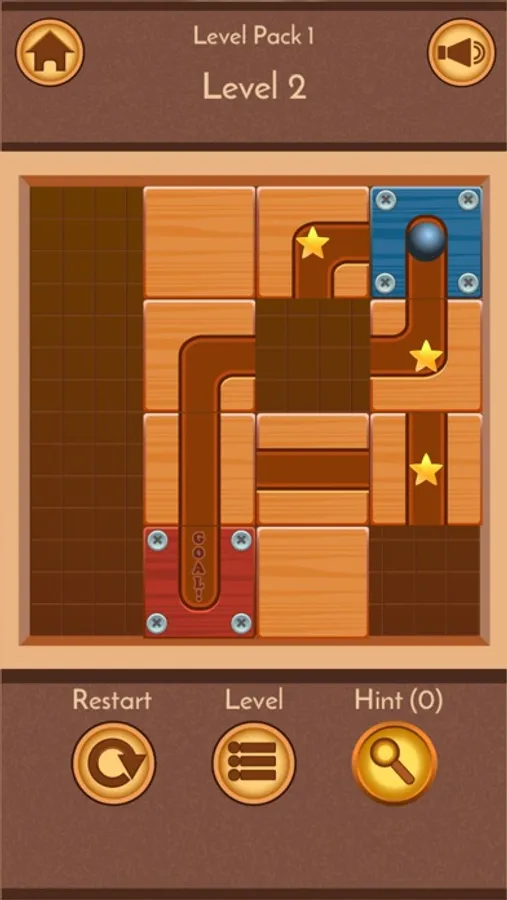 "Save The Ball, Wooden Maze" is a classic with a modern challenging twist. Slide tiles to create a connecting path for the ball to roll to the goal. Set a new record by earning the perfect 3 Star. Slide the block and find the ways for a ball roll to the goal. There are many blocks that can take a ball roll to the goal. Try to use the star's block in the way of the ball rolling. You'll get the best score! Don't miss the best brain teasers puzzle.