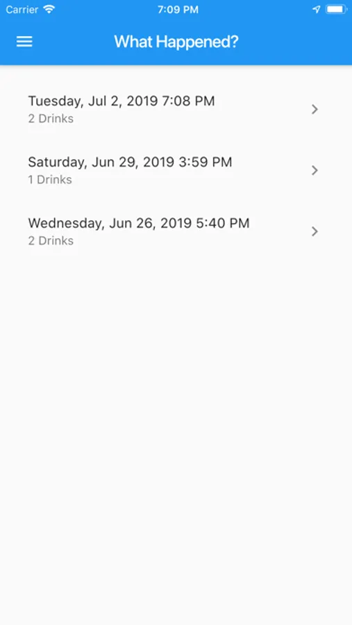 Check your stats! See how many drinks, when you had them, and how much time passed in between.