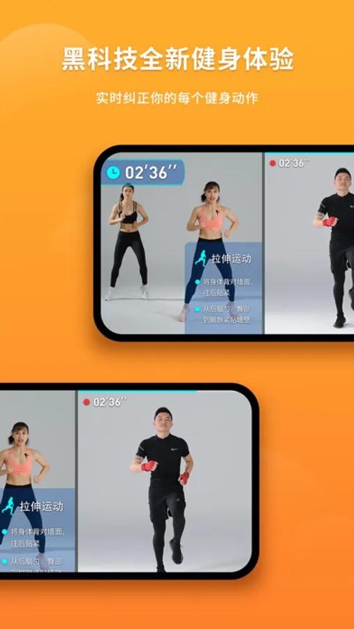 依靠AR投屏功能,教练手把手带你做动作练习, 不用去健身馆教练也可以随时指导。