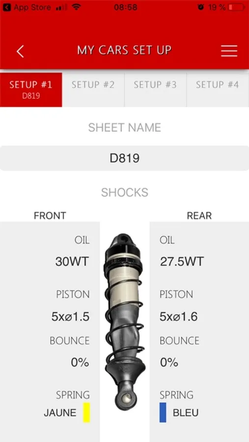 - MEMO SET UP: store the main set up of your cars (up to 4) and save them to be found later.