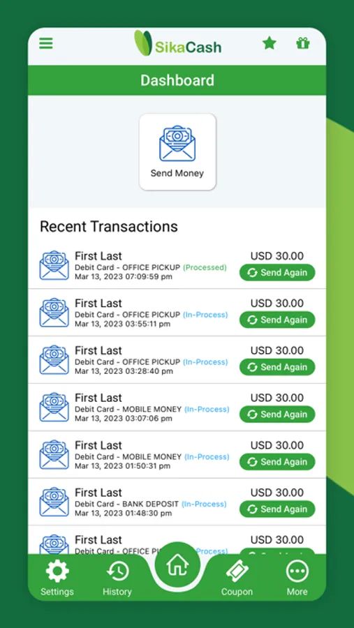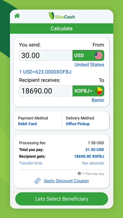 Send money with SikaCash through your Debit Card to make a money transfer to relatives and friends directly from your mobile device. We use the best exchange rates to make sure your money goes further. Send money to friends and track money transfers using the SikaCash app, and feel confident that your transaction will always go smoothly.