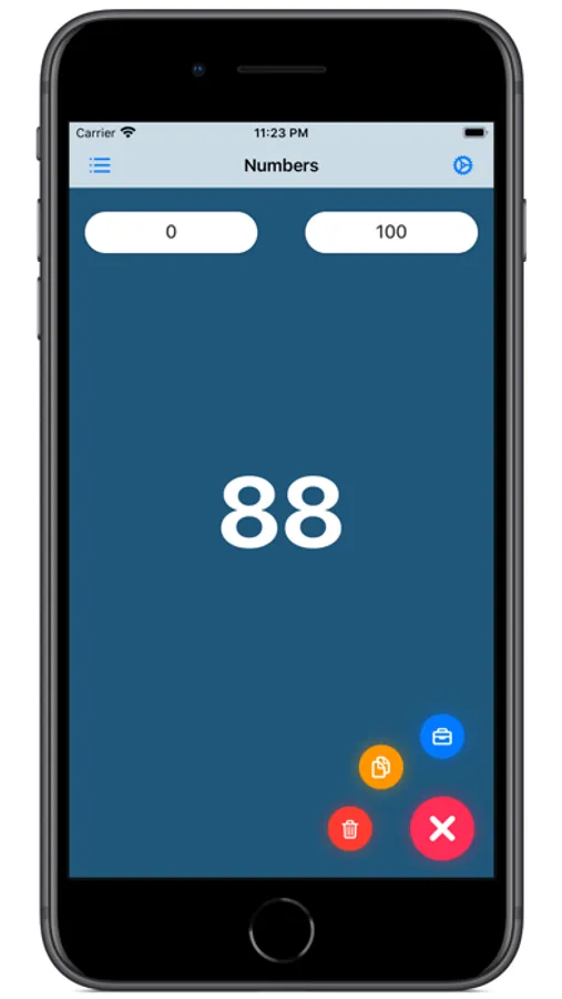 Generate a new random number simply by tapping on screen. Set the minimum or maximum values.