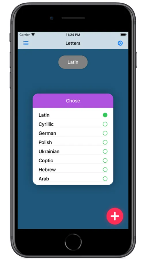 Generate a new random letter simply by tapping on screen. You can choose Latin, Cyrillic, Coptic, Hebrew and Arab letters