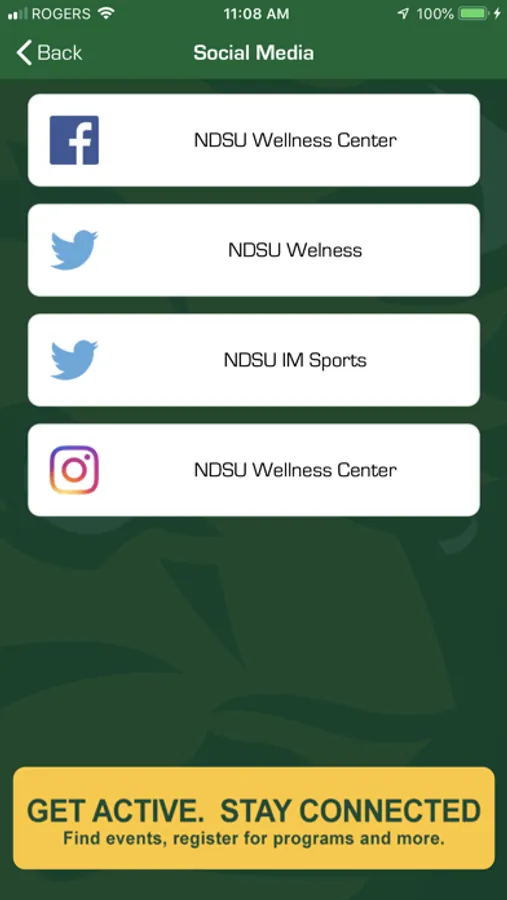 Official app for the North Dakota State University Wellness Center; includes Intramural