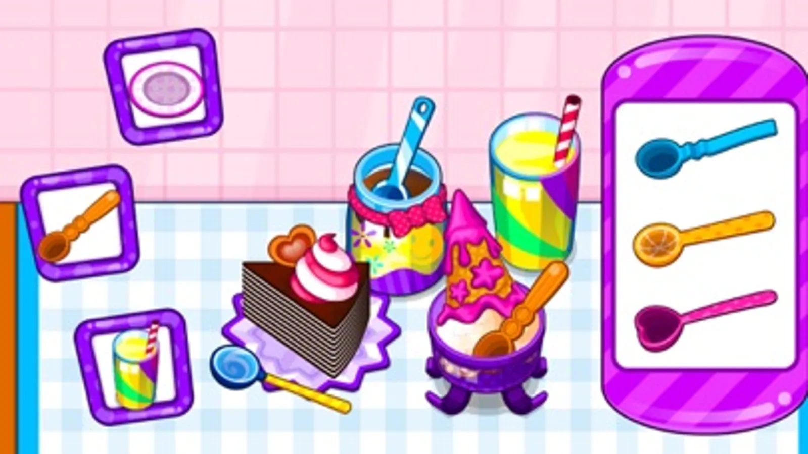Now, lots of girls like eating sweet food like ice cream, sweet cake and milky tea. Sweets can make us have a nice mood. So Today, in our brand new game you will have the opportunity to learn the cooking menus of delicious sweets food. We will show you the cooking procedures to cook one piece of sweet ice cream or yummy cake. Follow our instructions to cook step by step. Use the cooking tools to prepare the raw materials and heat it. Decorate the sweets food and show us your excellent cooking skills. Have fun.