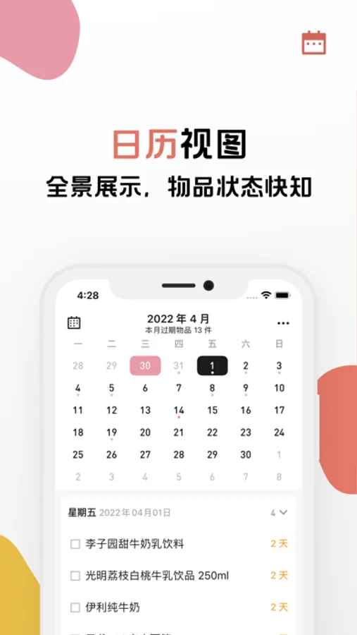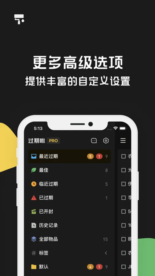 临近过期提醒,过期提醒,每日的待处理提醒,角标提示等等。多种触发方式,多种提醒手段,让你可以及时地了解到物品的状态。