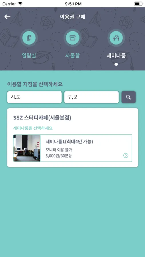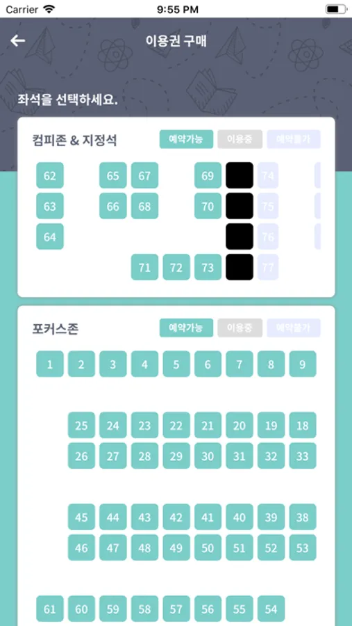 차별화 된 어플리케이션으로 어디서든 고객이 원하는 좌석을 예약하고, 간편한 결제를 통해 스터디카페와 프리미엄 독서실의 모든 서비스를 편리하게 이용하십시오.