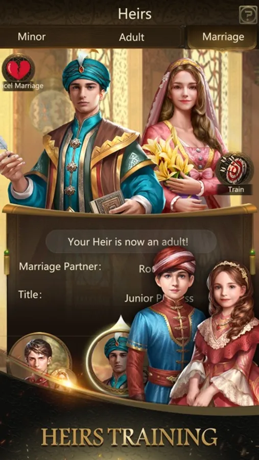 - Have children with your Consorts and teach your Heirs well. Once they're grown up, they can even marry Heirs of other players to help you form more powerful alliances!