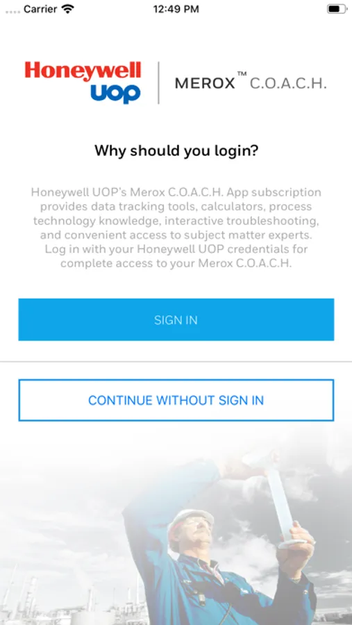 Honeywell UOP’s Merox C.O.A.C.H. App subscription provides data tracking tools, calculators, process technology knowledge, interactive troubleshooting, and convenient access to subject matter experts. Log in with your Honeywell UOP credentials for complete access to your Merox C.O.A.C.H.