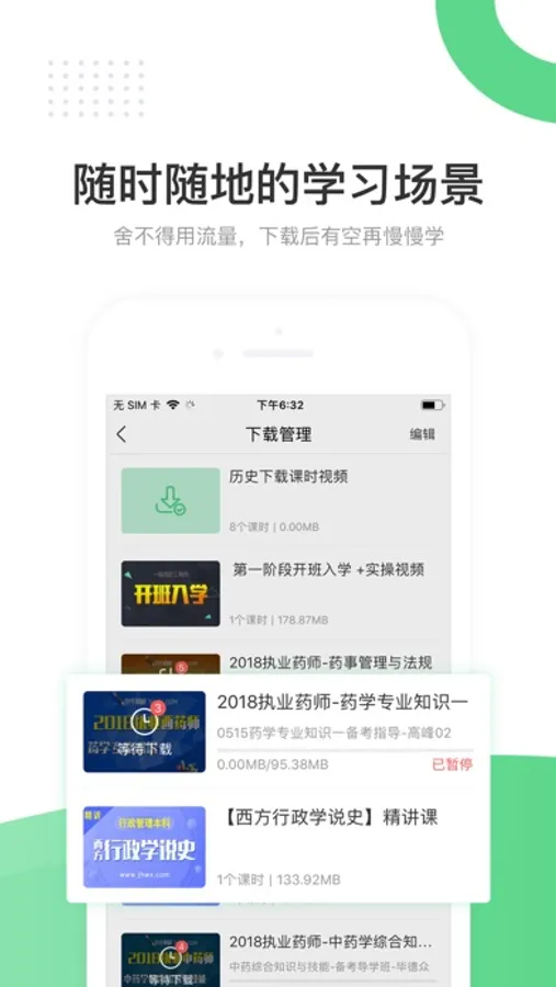 支持视频下载:下载到设备,拒绝时空限制随时随地学习