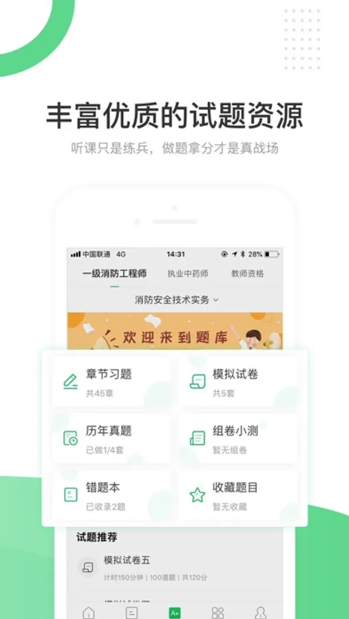 • 提供免费海量题库,包括章节习题,模拟试卷,历年真题等