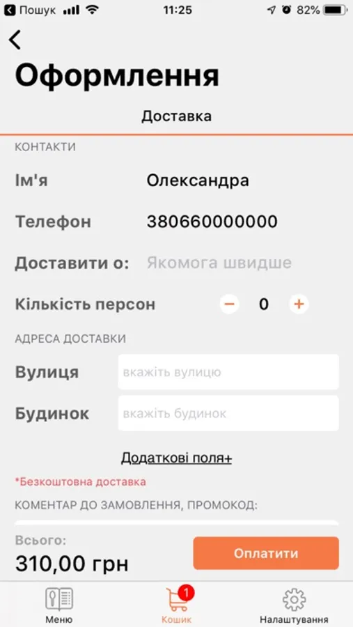 - обрати час доставки