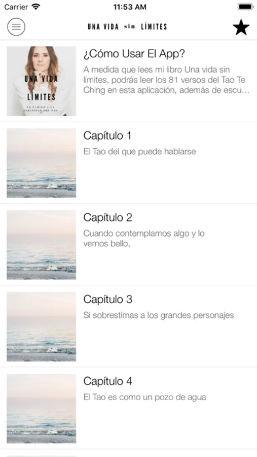 Con este app podrás leer los 81 versos del Tao Te Ching, meditar con los capítulos del libro Una Vida Sin Límites escrito por Alejandra Llamas y llevar a cabo prácticas para llevar a un nivel más profundo las enseñanzas del Tao Te Ching en tu vida diaria. También, podrás colocar en favoritos los versos, meditaciones y prácticas preferidas para un acceso más fácil. A través de esta herramienta tendrás la habilidad de conocer como el Tao Te Ching puede ayudar a tener una vida más integra y llena de sabiduría.