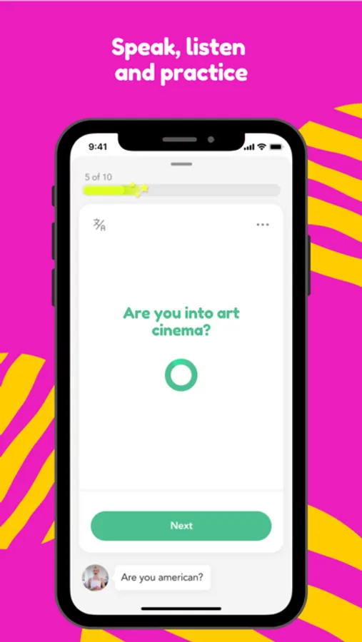 You will be offered to purchase a subscription to English Practice ByeAccent that will unlock premium functionality including video & English practice lessons. Description follows: