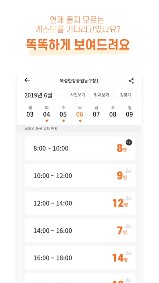 오늘 어디 코트에 사람이 많이 나올 지 고민하지 마세요.