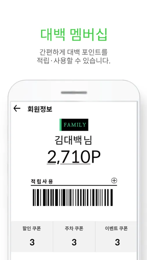 멤버십 포인트, 구매이력 등 나의 최신정보를 확인하세요!