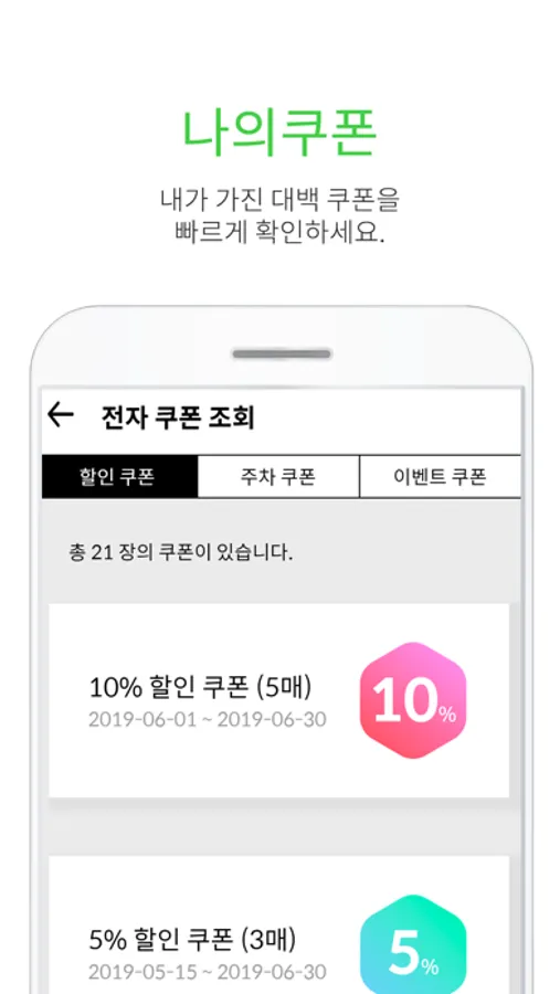 쇼핑의 즐거움을 더해줄 다양하고 특별한 쇼핑해택을 빠르게 확인할 수 있습니다.