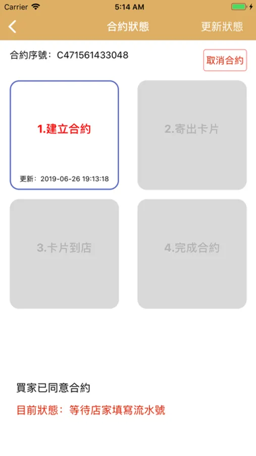2. 於App創建交易,自約定交易成立、至買方/賣方取件完成,即時獲得轉交進度相關資訊。