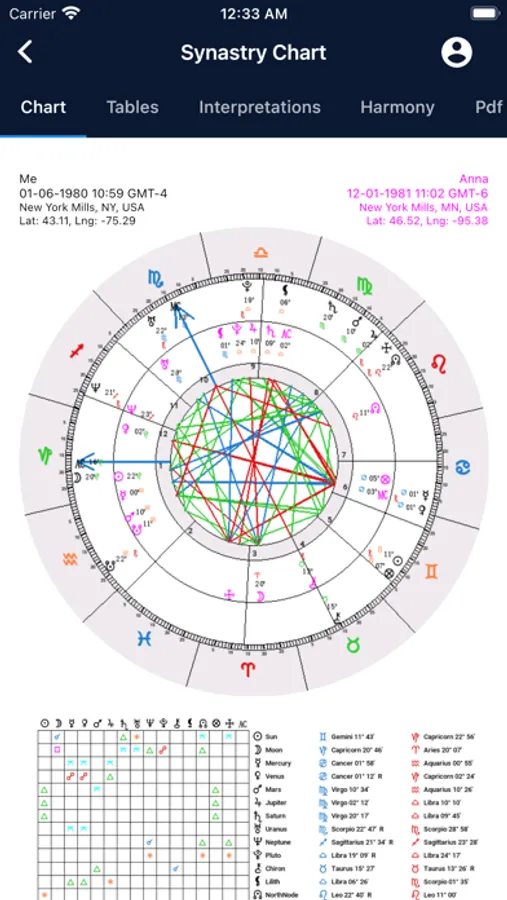 The Astrology Master program is not a simple astrology application, it is an advanced application that offers the opportunity to make more in-depth calculations and analysis. There are natal chart, transit chart, progression chart, solar arcs (solar arcs), synastry relationship chart, composite relationship chart, davison relationship chart, planetary hours, current chart, lunar calendar, solar return, lunar return and many more chart types in the application. .