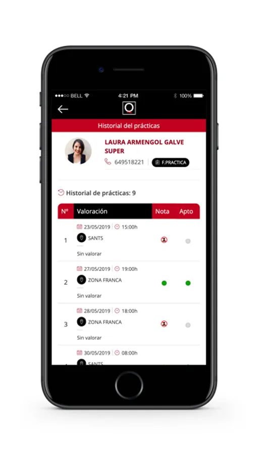 A través de esta APP los profesores de Quality Drivers van a poder realizar acciones como: Visualizar sus próximas prácticas y el estado de cada una (activa/cancelada), Valorar las prácticas ya realizadas.