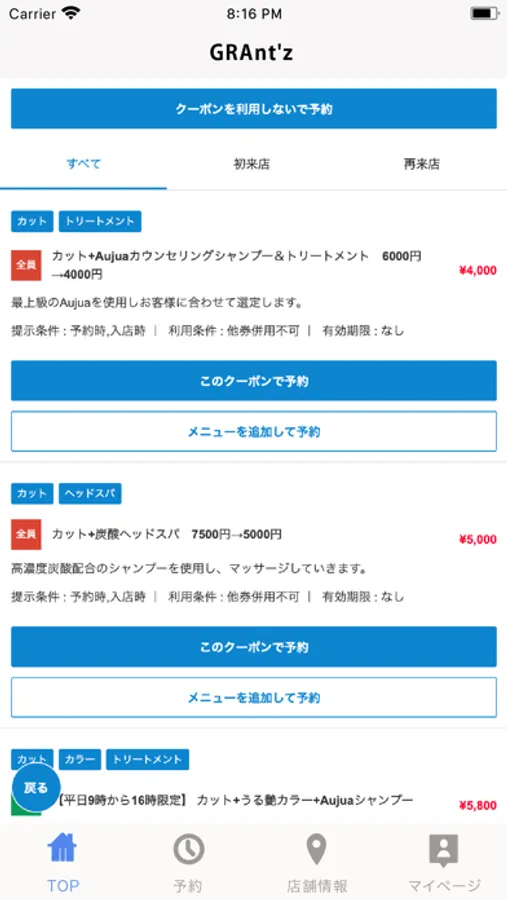 お得なクーポンが配信されます。ネット予約時にクーポン利用での予約も可能なので来店時もスムーズに施術頂けます。