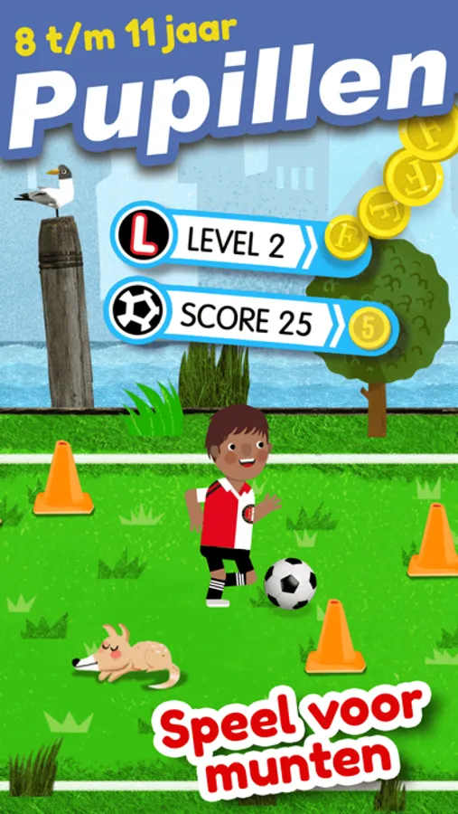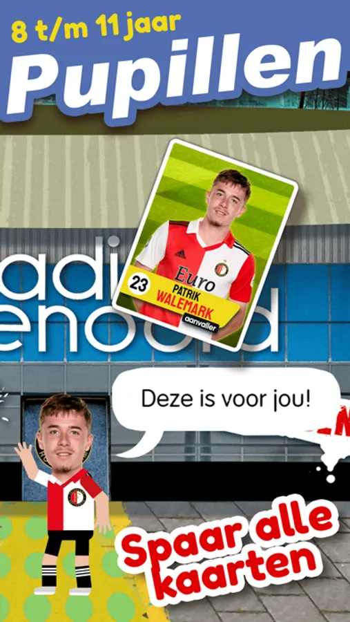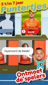 Spaar munten door te spelen! Verbreek jouw highscores of haal een hoger level van de games en verdien gouden munten. Hiermee koop je Feyenoord-shirts, schoenen, maskers en nog veel meer in het winkeltje. Maak jouw eigen avatar helemaal af en laat ons dan zien hoe jouw avatar eruit ziet door een screenshot met #Kameraadjes op Instagram te delen! Kun jij winnen in een één tegen één duel met een speler van Feyenoord? Dribbel jij langs alle pionnen en obstakels op het veld? Laat jij je niet uit het veld schoppen bij een potje Feyenoord-trefvoetbal? Ontmoet de Feyenoord-spelers ook buiten het trainingsveld en verzamel alle spelerskaarten. Bovendien tel je af tot de volgende wedstrijd van Feyenoord en blijf je live op de hoogte van de tussenstand in De Kuip!