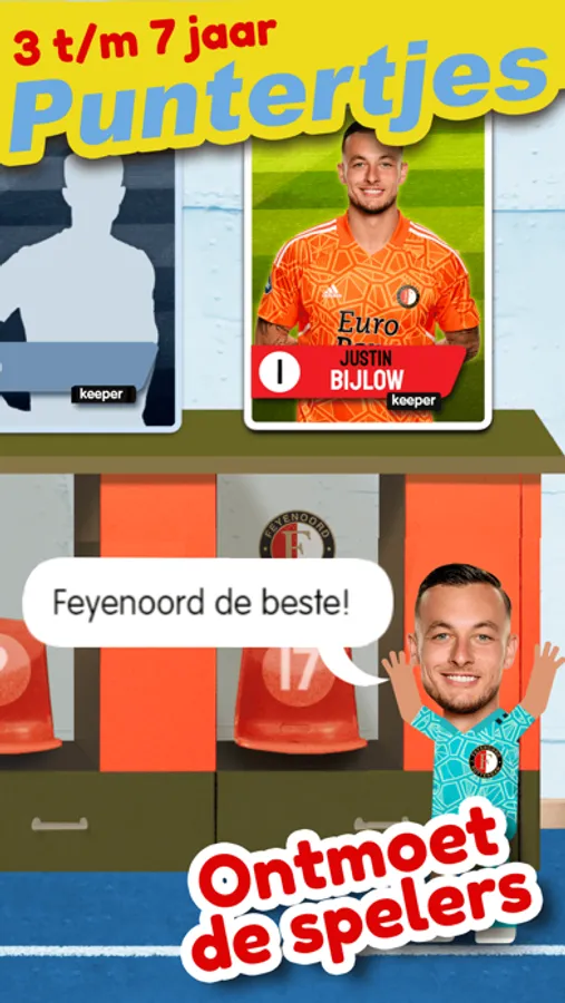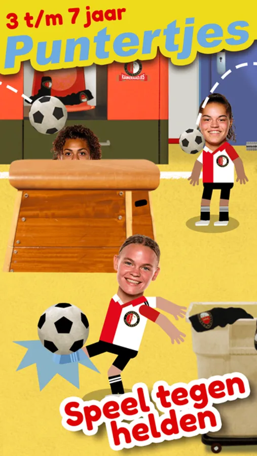 In de Kameraadjes App kunnen leden van de Juniorclub van Feyenoord zich uitleven in de wereld van hun favoriete voetbalclub. Voor iedere leeftijd is een eigen Feyenoord-wereld gecreëerd waar je jouw eigen avatar kunt maken en tegen jouw voetbalhelden kan spelen.
