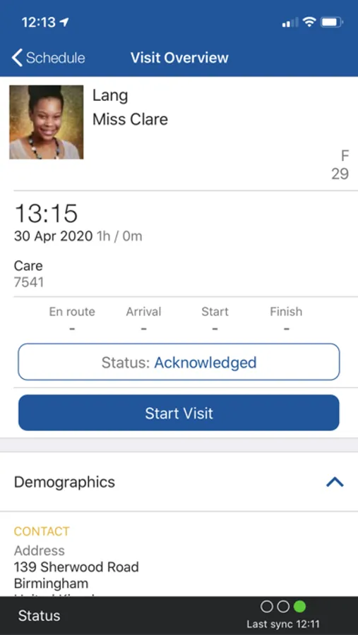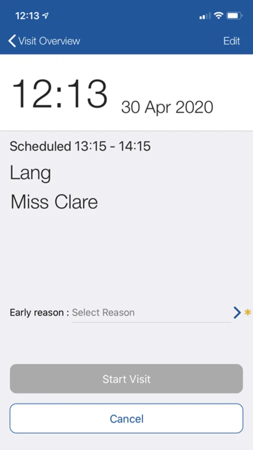 • Ability to record actual visit and departure times