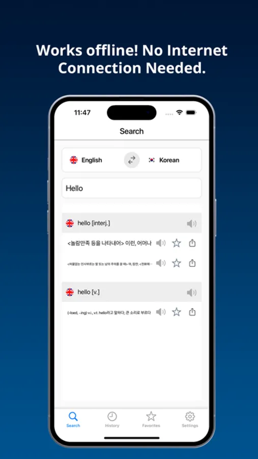 Offline English Korean Dictionary. Thousands of words and expressions!