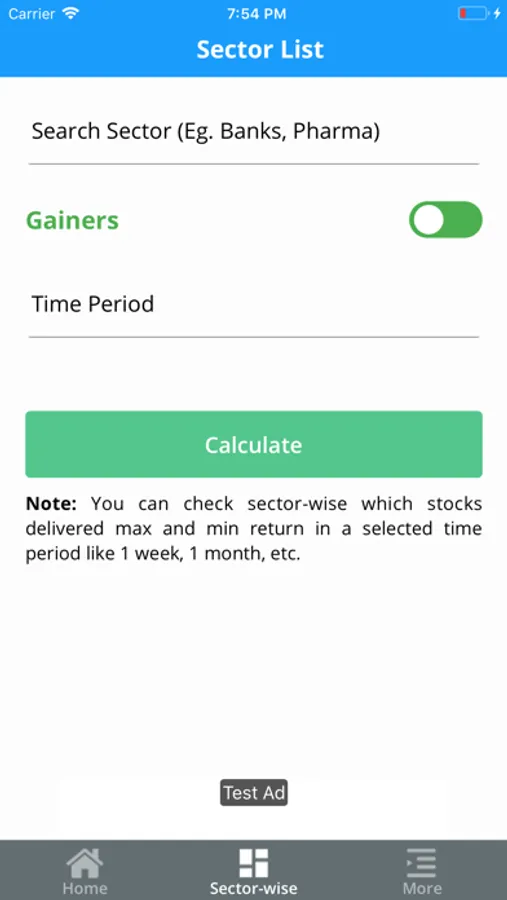 In this app, you will also able to see, all the performing stocks from any particular sector like banking, Pharma, IT, etc.