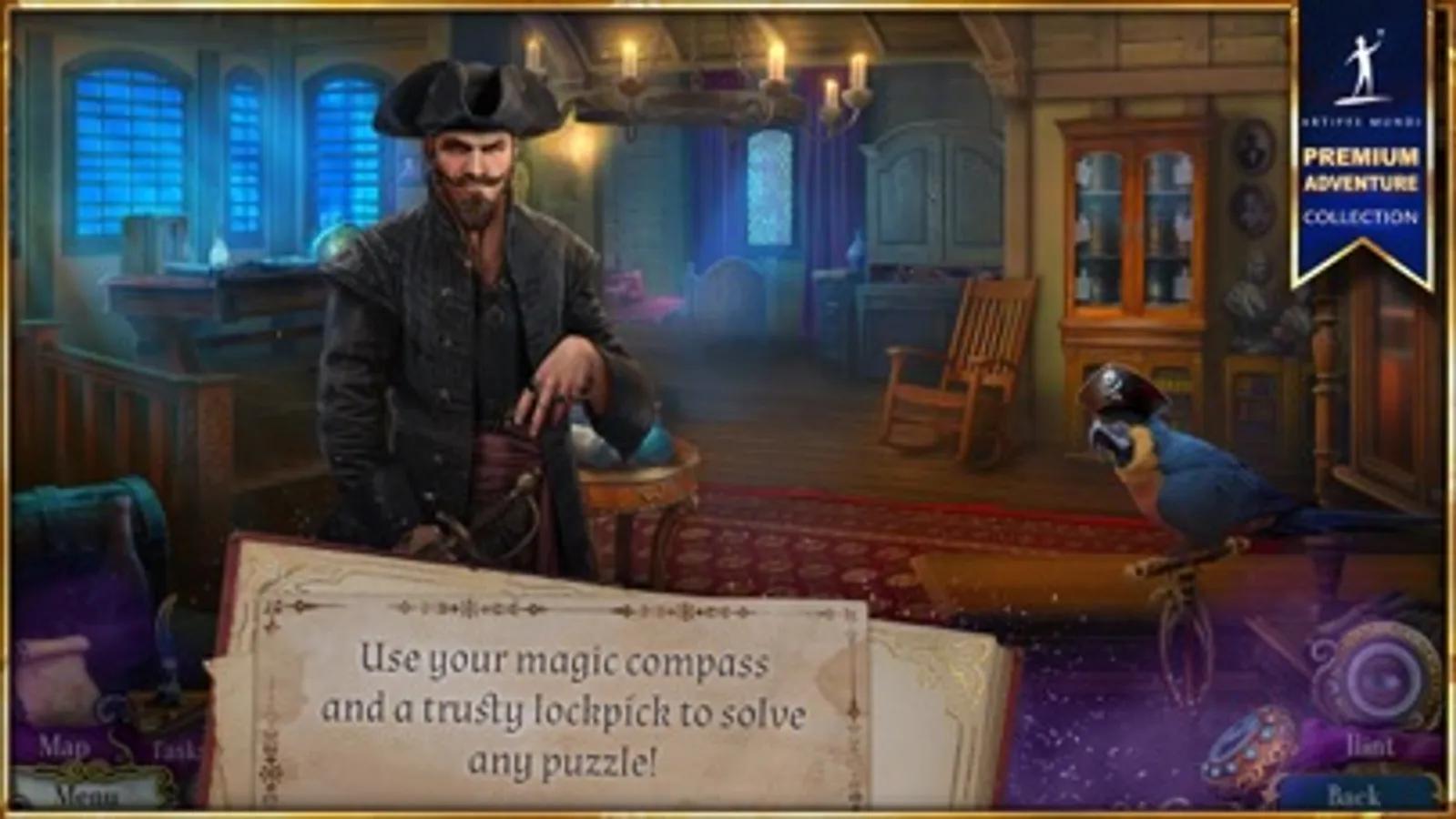 • Use your magic compass to solve 20 seadog puzzles and get the booty!