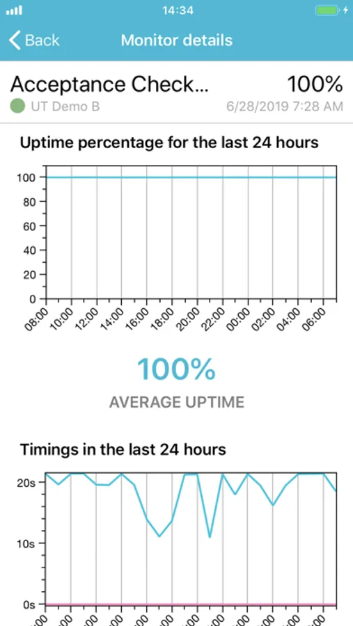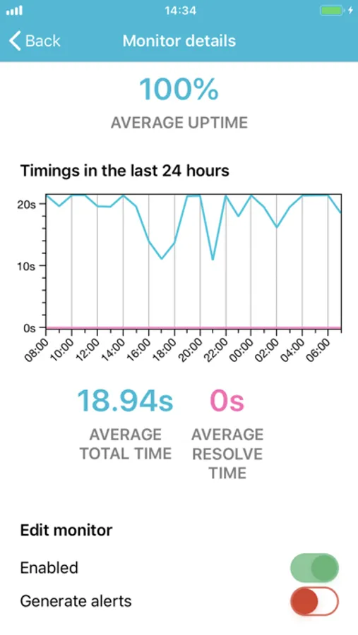 - Shows uptime percentages for each monitor, for the last 24 hours.