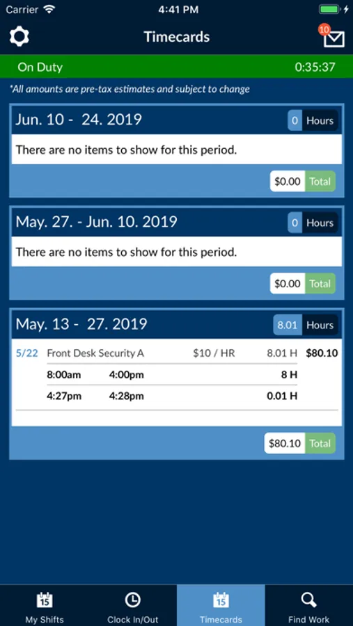 - Clock in/out of current shifts