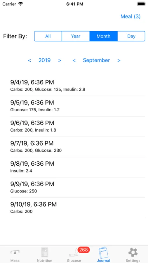 Connects with Apple Health to allow you to save and track information about your meals including total carb count, glucose, and insulin delivered.