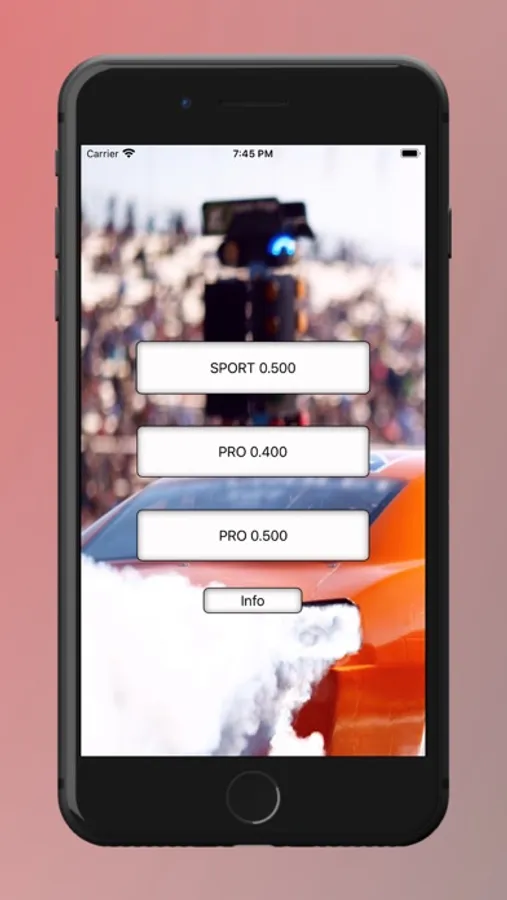 Autostart acceleration measurement. Choose from 3 types of trees - SPORT 0.500, PRO 0.400, PRO 0.500 and race!