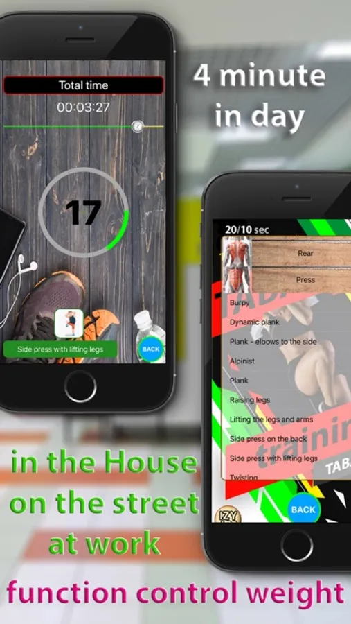 - the ability to choose exercises in automatic mode, and then every time you will have a new set of exercises for Tabata
