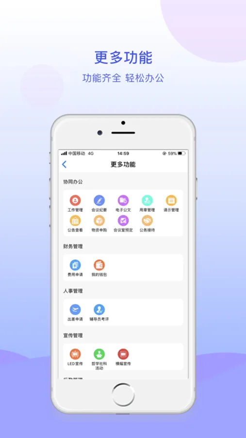 主要用于校园教工办公场所的业务流程审批,校园官方公告通知接受等业务,提高高校教工办公效率。