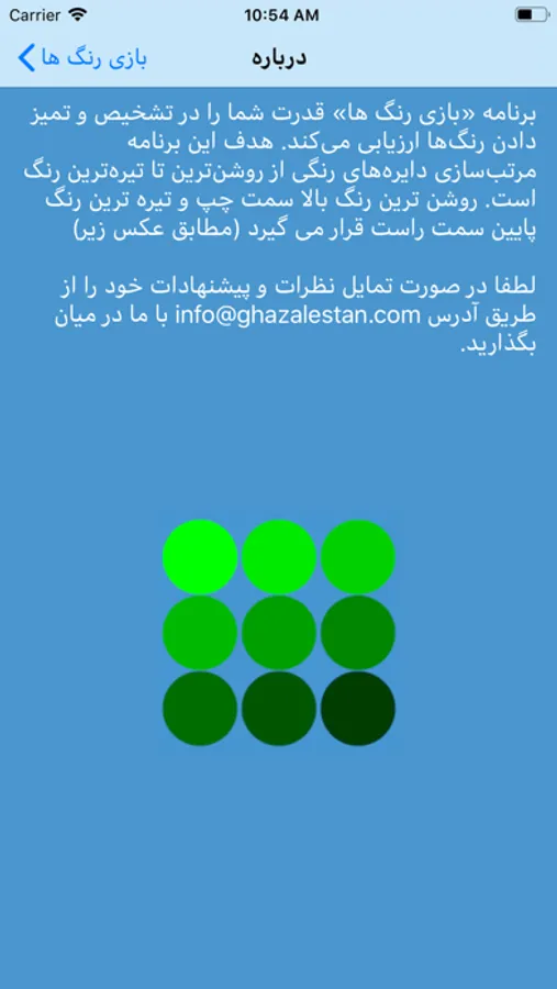 برنامه «بازی رنگ ها» قدرت شما را در تشخيص و تميز دادن رنگها ارزیابی میکند.