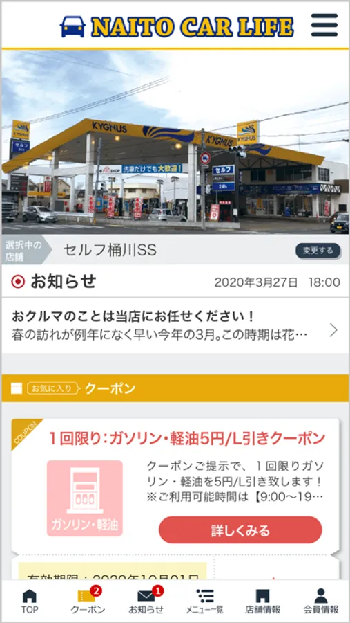 当社の公式アプリ「内藤カーライフ」ではアプリで簡単に洗車・コーティングなどのご予約や愛車のメンテナンス管理が可能の他、当店で利用いただけるお得なクーポンや各種メニューの割引情報を配信しております。