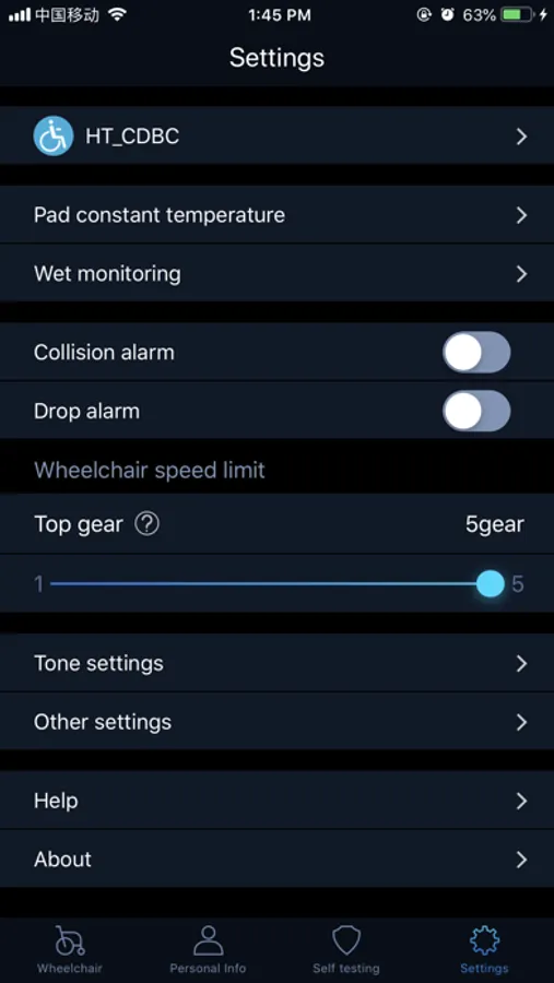The Hopsmart app was created for a powerful electric wheelchair controller, it should co-working together with the controller via Bluetooth connection between controller and mobile phone or tablet which installed the app. The Hopsmart app also included a lot of great functions, with the controller paired successful, app can help user make a self testing to find the wheelchair abnormal status in order to ensure the electric wheelchair always safety and self testing processing with a beautiful animation. It can let user set up his/her medical card for any others who can provide helping. By App, user can use their cell phone or tablet as a remote controller to control the wheelchair, the available distance around 15 to 20 meters. This will help user training themselves to handle simply action in their life and set up their confidence. By Hopstech, user can set up and modify their password to ensure others Hopsmart app that installed in other devices can’t pair with user’s wheelchair. Freely turn on and off the reverse tone sound to match different environment. The App also can let user restore the electric wheelchair back to settings during in manufactory.