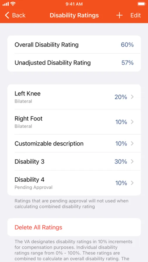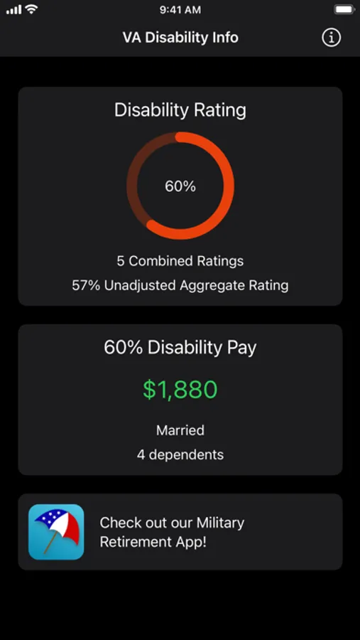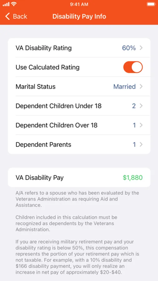VA Disability Pay is an application intended to assist military personnel from all branches of the military service by informing them of their disability benefits. VA Disability Pay gives assistance by calculating an estimation of Veterans Affairs (VA) disability pay. It also calculates an overall disability rating based on your combined individual disability ratings.