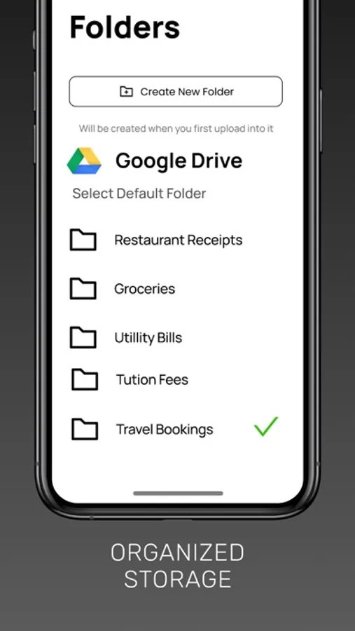 - Our app will create a 'Receipts' folder (which can be changed under settings to categorize your receipts) where all your receipts will be uploaded.