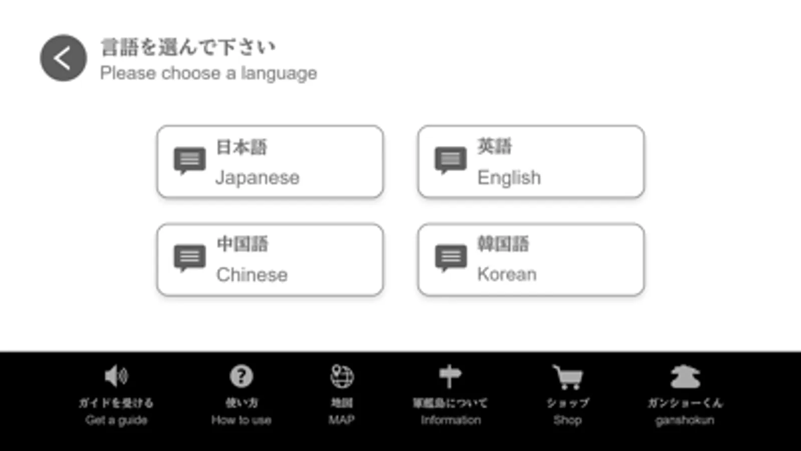 OmegaCode printed on the bottom-right corner.When smatphone camera take an image of OmegaCode, immediately recognize its image and sound “Bon”. Then image of Gunkanjima comes appear on display and announce “Please tap the picture you want to see”. There are four guide places at Gunkanjima, so scroll down image and tap the place you want to see. Multi-language Cruse guide softwate will activate and sightseeing sound guide come out in synchronism with pictures and closed caption.